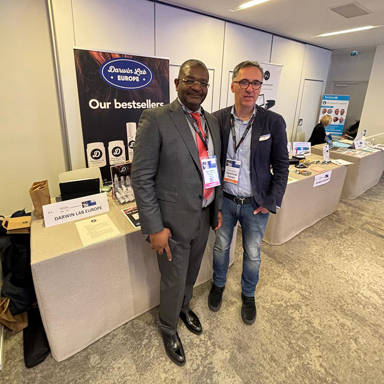 The DarwinLab Europe booth next to the Devroye Instruments booth of Dr. Devroye